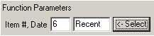 5. Then, go to the Function Parameters section and click on the 'Select' button. (You'll see the two boxes populate with 6 (meaning item # 6) and Recent.
